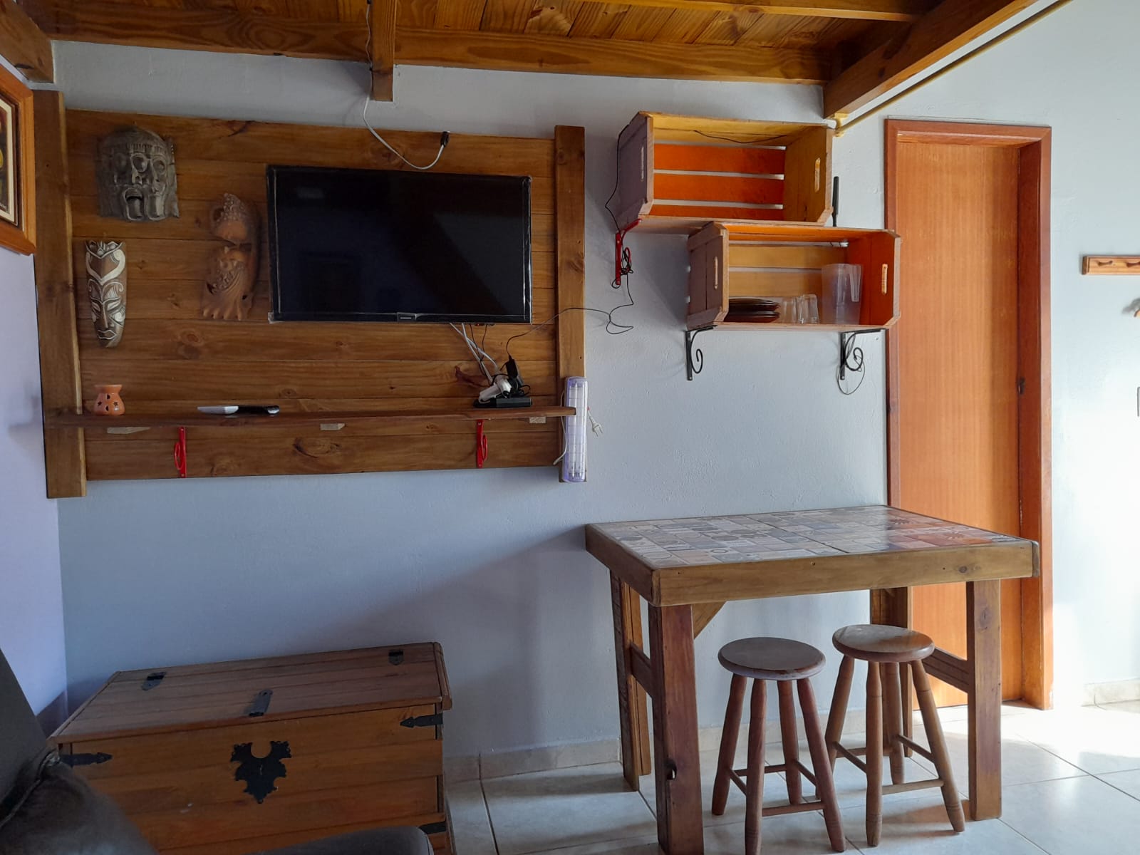 O Apartamento 4 do Recanto Gaia é um espaço encantador, projetado para proporcionar uma estadia confortável e agradável. Com uma decoração simples e rústica, o apartamento possui uma atmosfera acolhedora e convidativa. Uma característica especial deste apartamento é a sua cama de casal, localizada em um encantador mesanino de madeira, que cria um ambiente íntimo e aconchegante. Além disso, o apartamento oferece um sofá-cama, perfeito para acomodar hóspedes extras. Os visitantes também podem desfrutar de comodidades como televisão, Wi-Fi, cozinha equipada, ar condicionado e acesso à piscina. É o lugar ideal para casais ou pequenos grupos que desejam desfrutar de momentos relaxantes e memoráveis no Recanto Gaia.