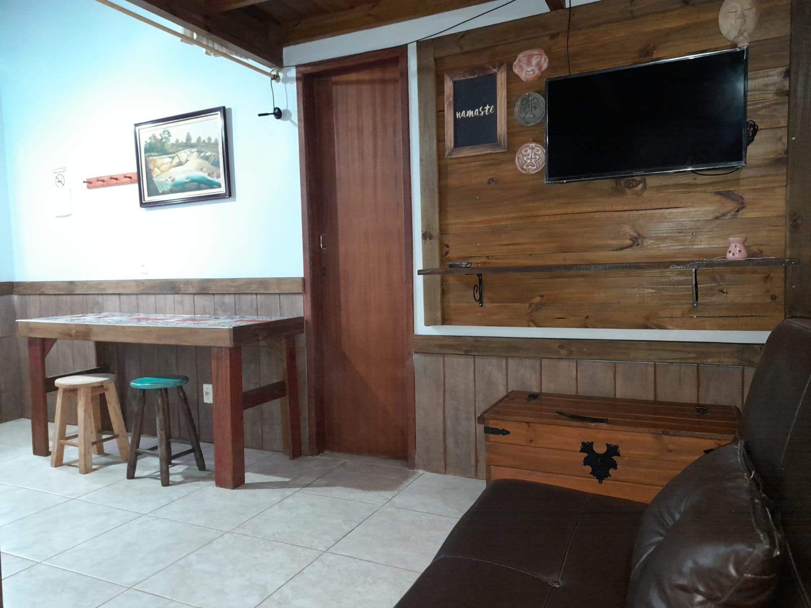 O Apartamento 3 do Recanto Gaia é um espaço encantador, perfeito para acomodar famílias em busca de conforto e comodidade. Com uma decoração simples e rústica, o apartamento oferece uma atmosfera acolhedora e convidativa. O destaque deste apartamento é a presença de uma cama de casal localizada em um charmoso mesanino, criando um ambiente aconchegante para os pais. Além disso, o apartamento conta com um sofá-cama espaçoso, proporcionando um local confortável para as crianças descansarem. Os hóspedes também terão à disposição uma televisão, Wi-Fi, cozinha equipada, ar condicionado e acesso à piscina. É o refúgio perfeito para famílias desfrutarem de momentos relaxantes e divertidos no Recanto Gaia, aproveitando todos os confortos e a tranquilidade que o espaço oferece.